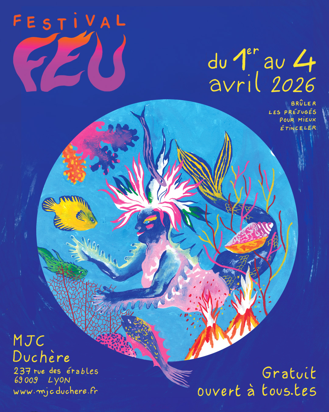 Du 1er au 4 avril 2026, le Festival FEU revient dans les murs de la MJC Duchère fraîchement renovée, plus vivante et lumineuse que jamais.